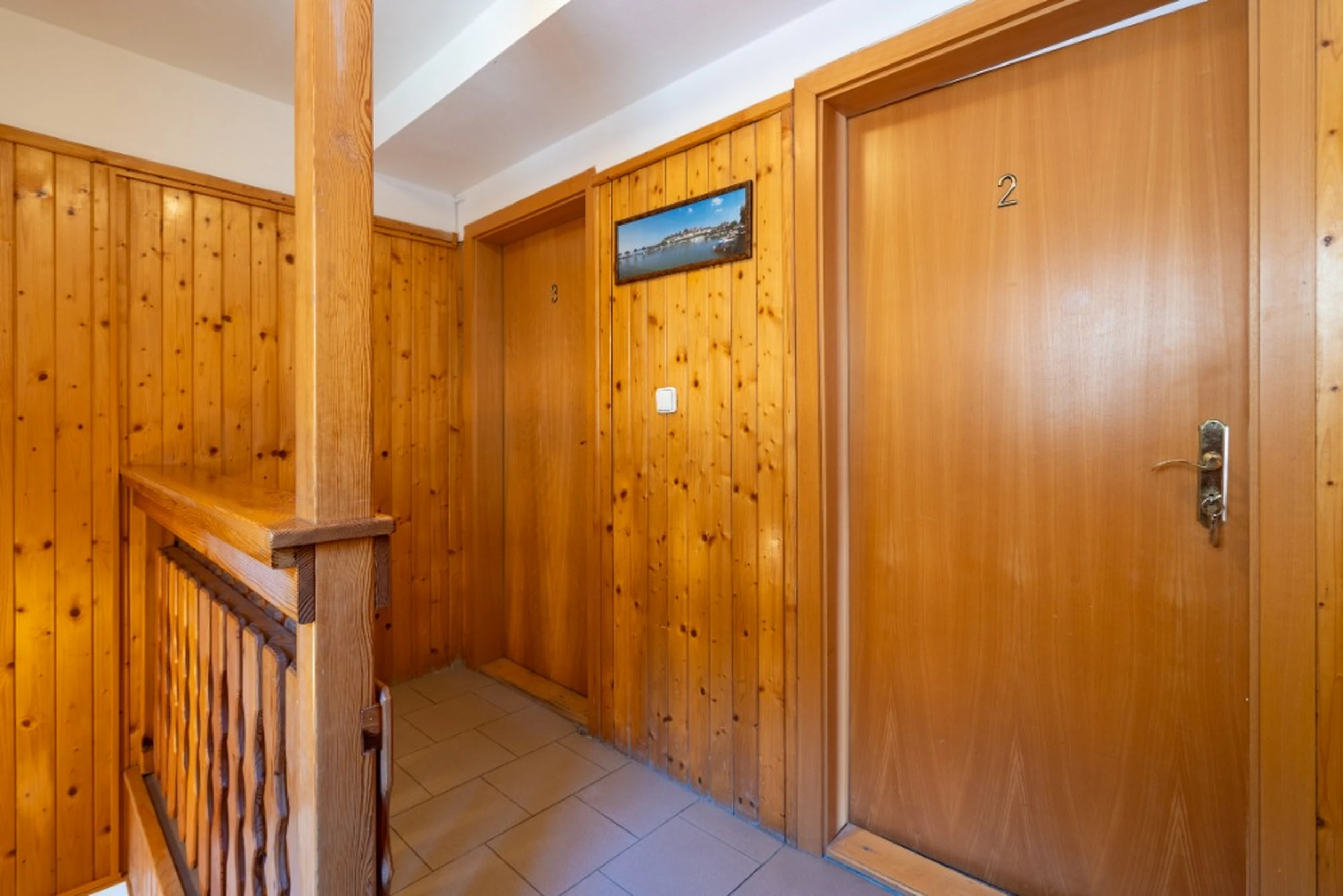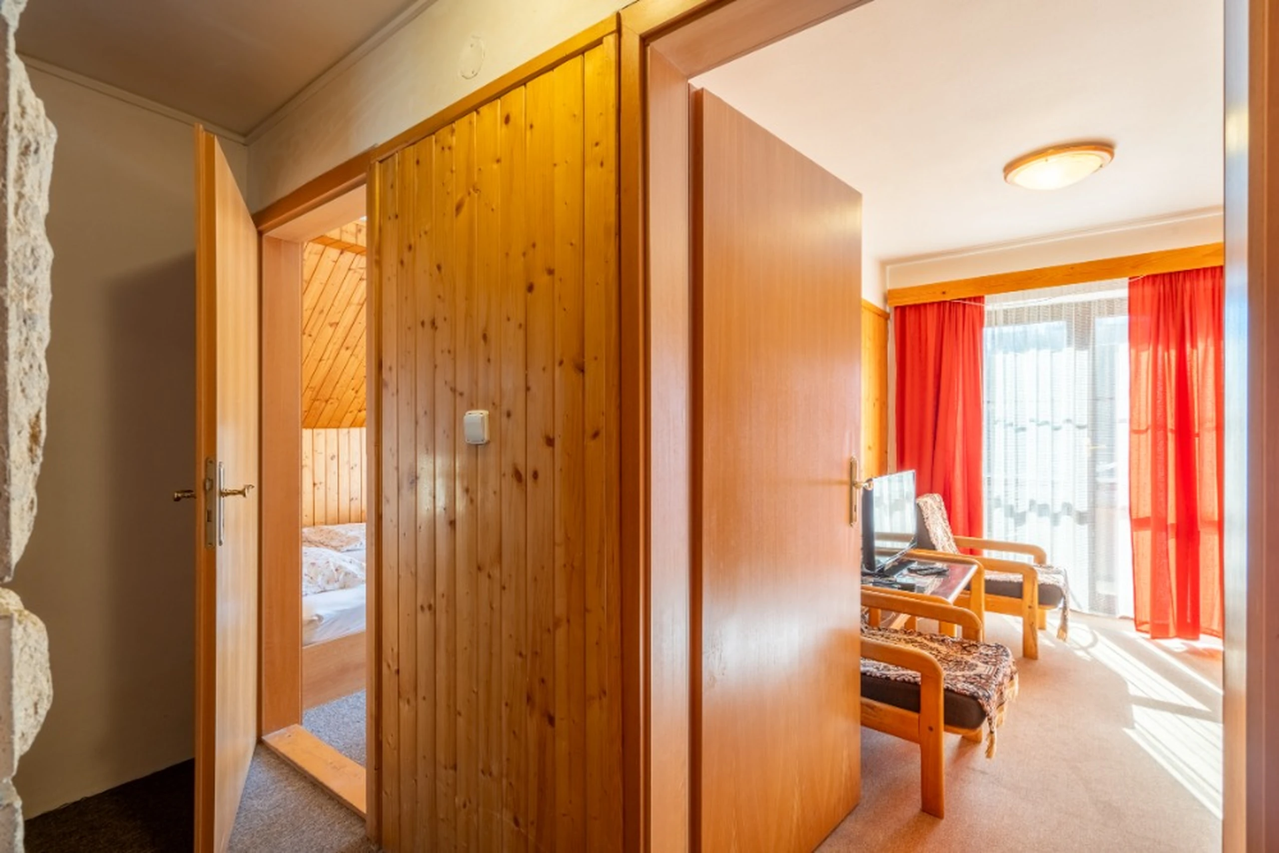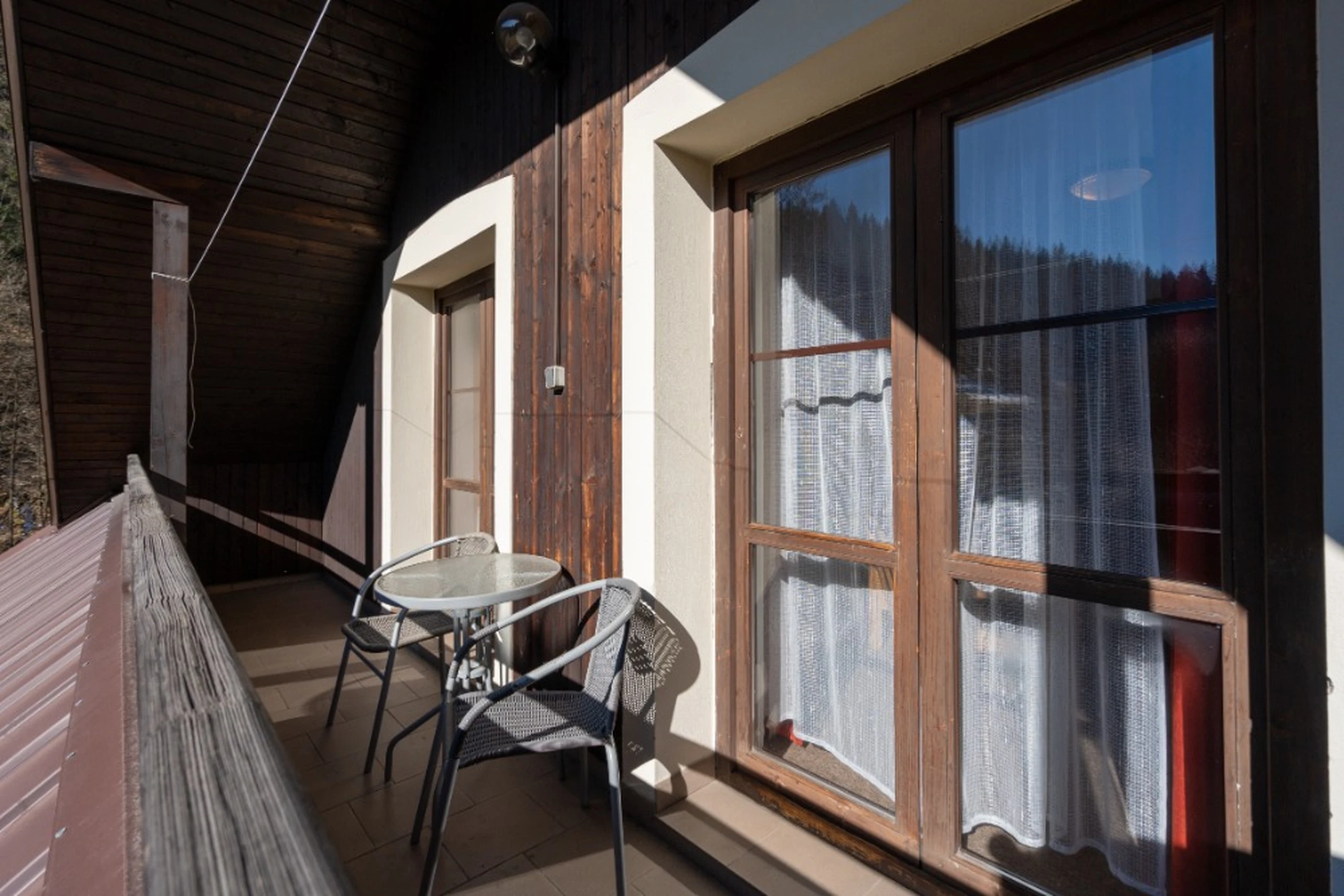 Apartmán 2 Soví hnízdo je ideálním zázemím až pro šest osob. Nabízí dostatek pohodlí i soukromí ve dvou ložnicích. Oba pokoje jsou vybaveny televizí a manželskými postelemi, ve větší místnosti s přistýlkou.Součástí apartmánu je koupelna se sprchovým koutem, WC a balkon s posezením. Společné zázemí společenské místnosti s plně vybavenou kuchyní a barem, které potěší malé i velké hosty, se nachází v přízemí. Po dni plném zážitků si můžete odpočinout na zahradě nebo u společného grilu.