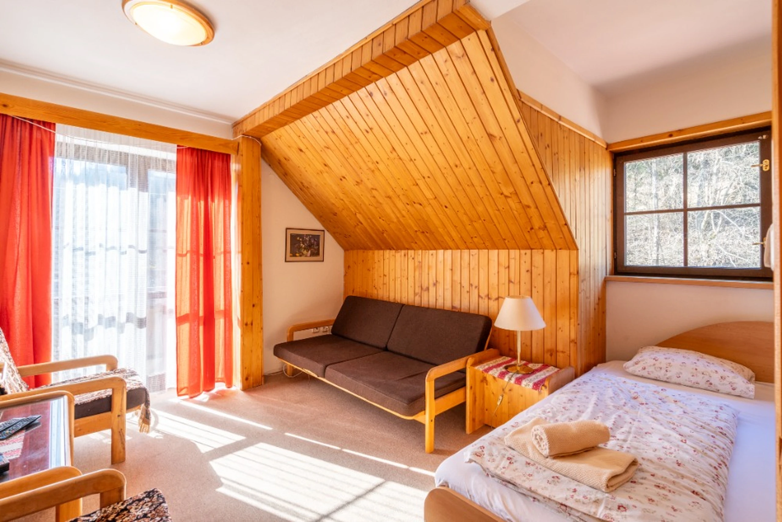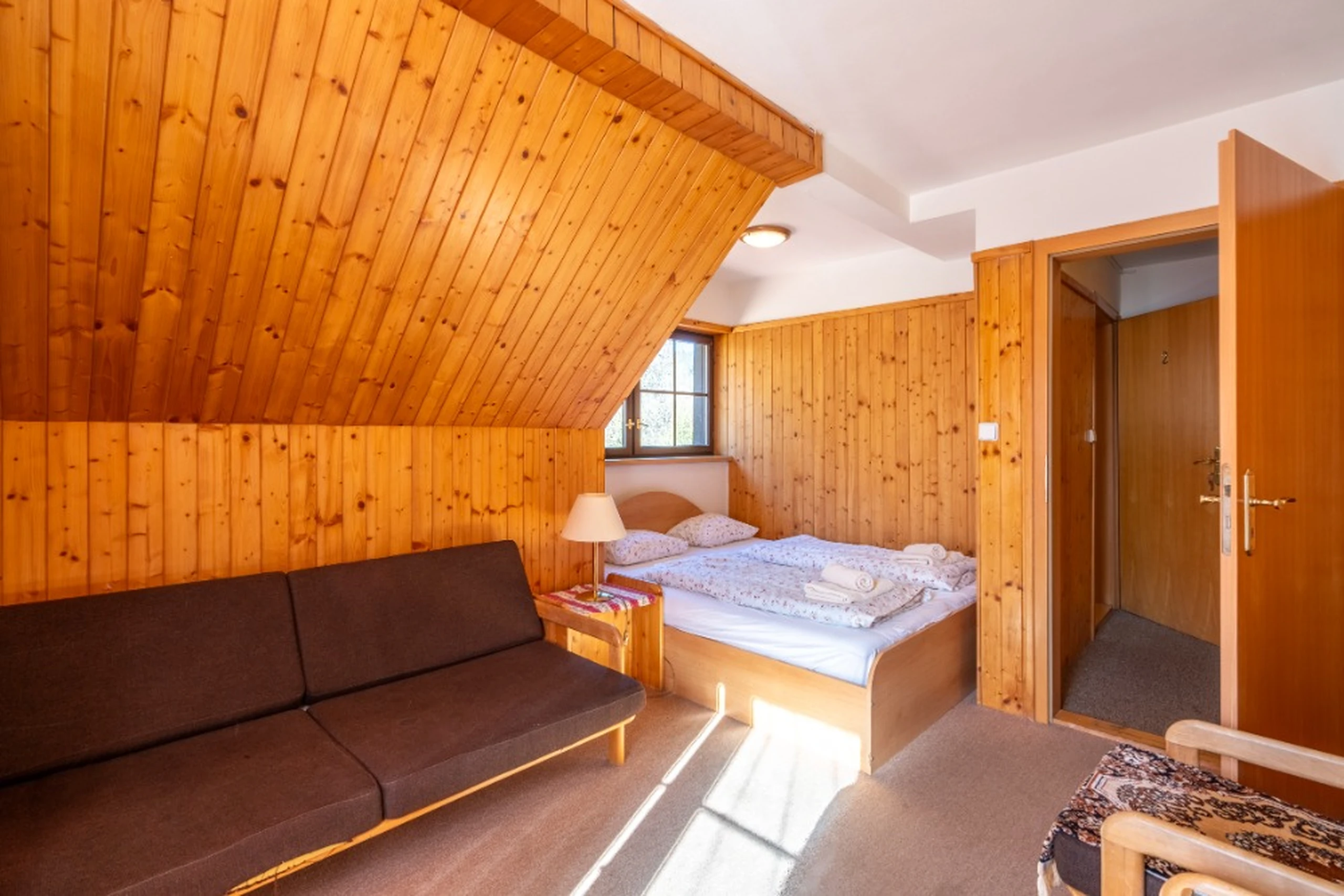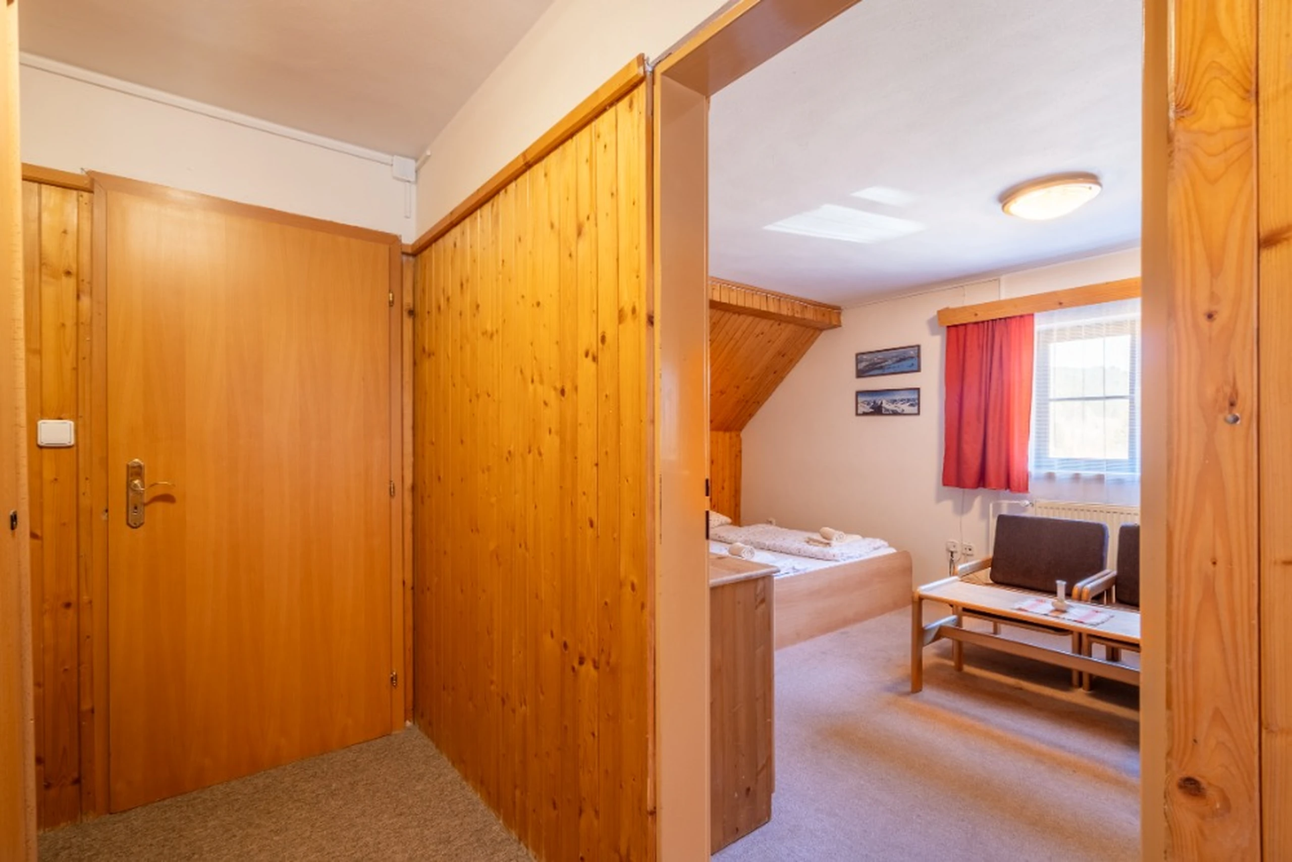 Apartmán 2 Soví hnízdo je ideálním zázemím až pro šest osob. Nabízí dostatek pohodlí i soukromí ve dvou ložnicích. Oba pokoje jsou vybaveny televizí a manželskými postelemi, ve větší místnosti s přistýlkou.Součástí apartmánu je koupelna se sprchovým koutem, WC a balkon s posezením. Společné zázemí společenské místnosti s plně vybavenou kuchyní a barem, které potěší malé i velké hosty, se nachází v přízemí. Po dni plném zážitků si můžete odpočinout na zahradě nebo u společného grilu.